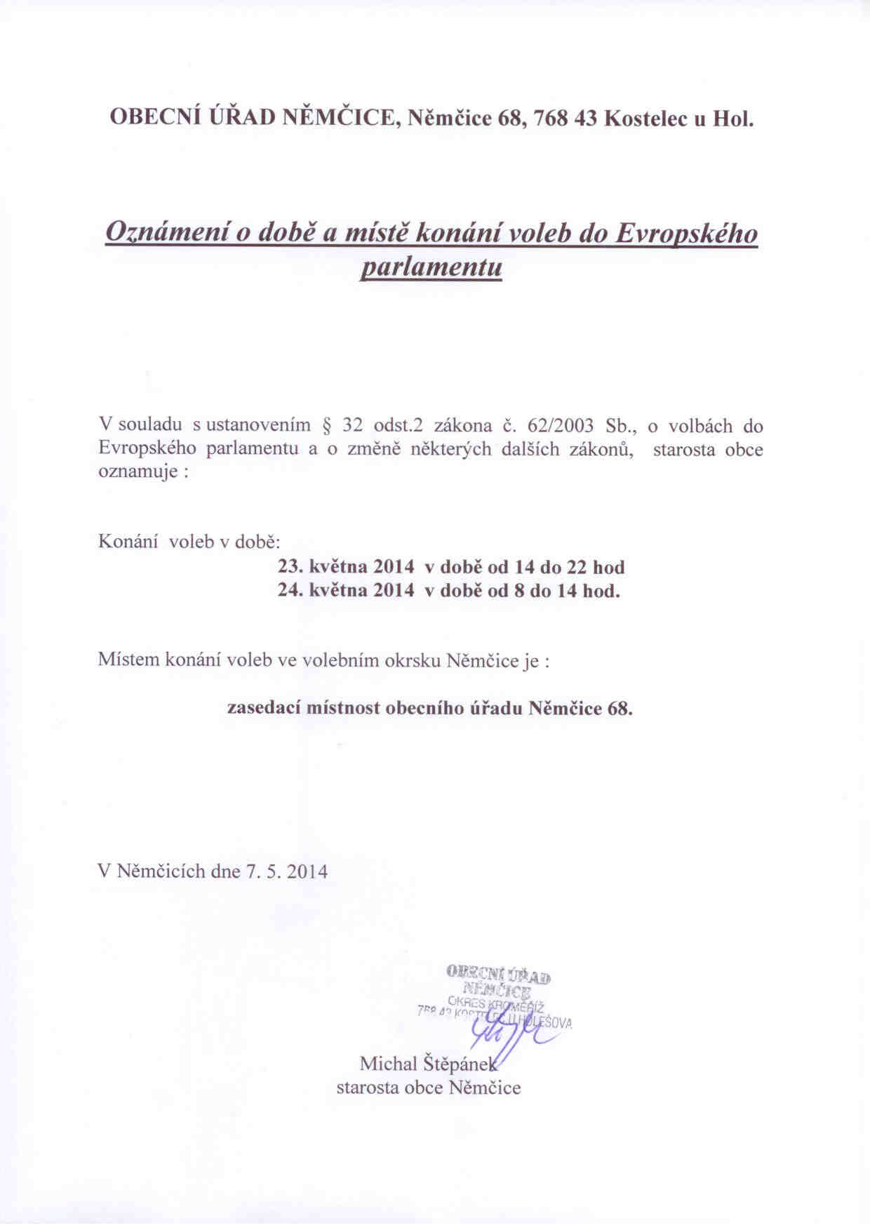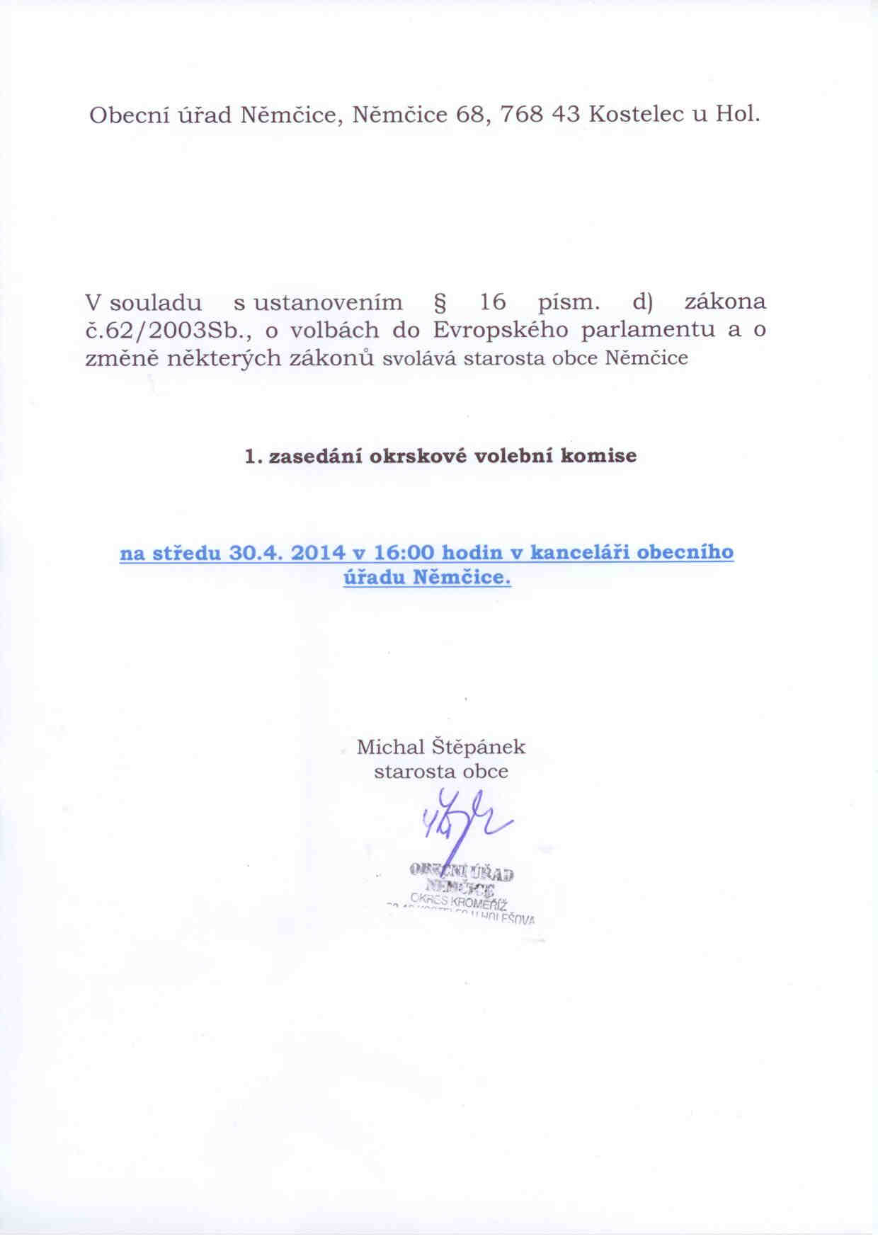 Pozvánka na 1. zasedání okrskové volební komise zde ke stažení